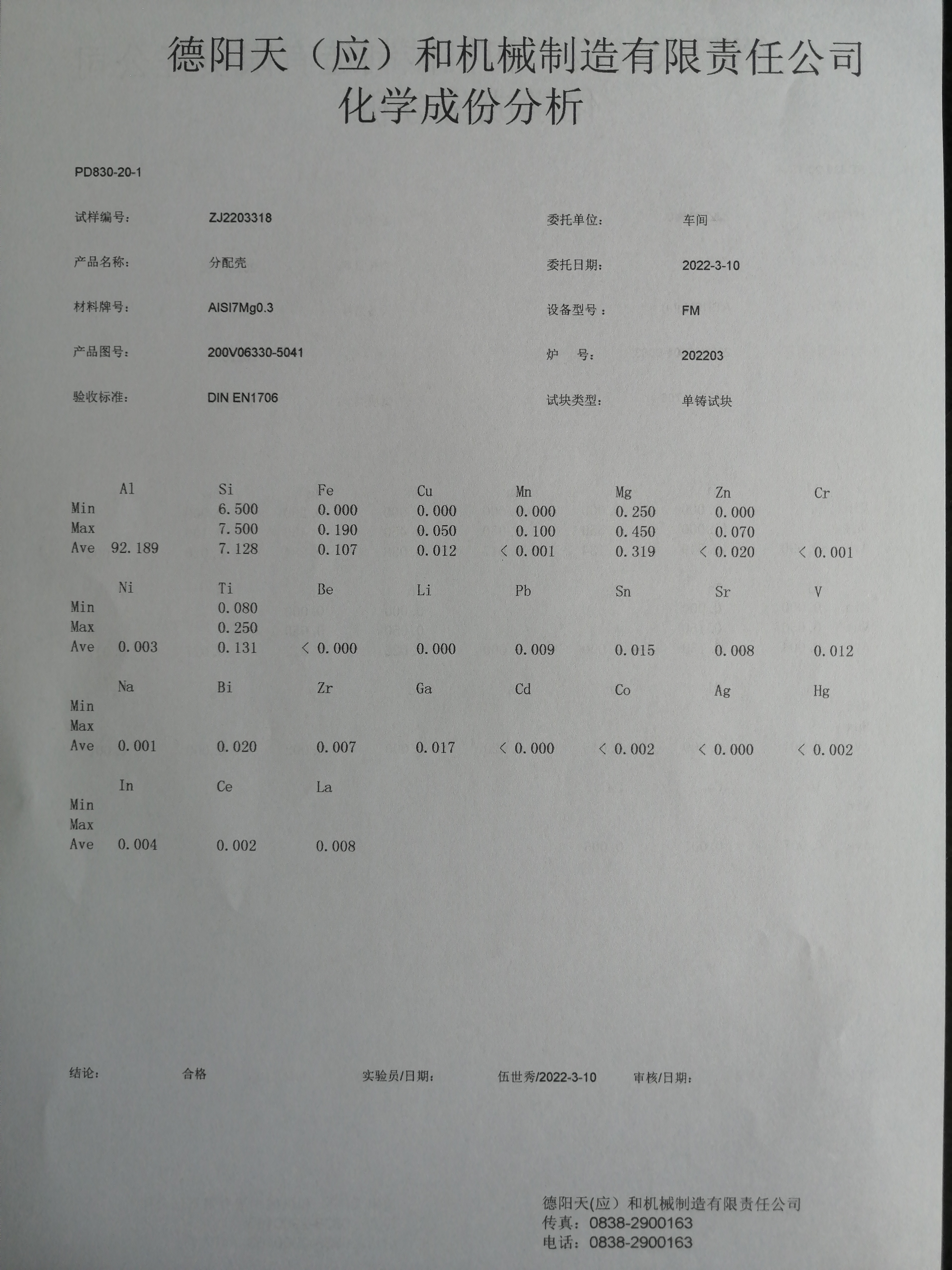 A small piece of specimen will be taken to the lab for microscopic examination to determine the metal grain size, shape, segregation, etc. The metallographic examination is the preparation of specimens for microscopic examination and the study of microstructures in relation to the physical and mechanical properties of a particular material. Casting alloys are typically specified per ASTM, AMS, and GB alloy specifications.